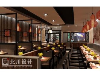 設計方案:此餐廳是人人餐飲公司旗下高端店形象。餐廳的設計是從傳統中式風格中演變出來的現代中式,中式風格給人一種莊嚴,典雅。中式是國人對傳統的傳承,是中國文化的精華。餐廳融合了現代的藝術氣氛,使得餐廳在具備莊嚴典雅的同時又給人一種舒適,放松的感覺。這是餐廳設計的根本理念。 餐廳的特色: 大廳中的磚紋墻,傳統木質造型,現代色彩表現。在設計的時候充分理解作為用餐功能的空間,在照顧親切氛圍的大背景下,體現現代中式的時尚儒雅。手繪餃子工藝流程畫是中國文化的博大精髓.仿佛終于找到了隱世的文化空間,柜中的書更是讓人置身于文學的國度,久久不愿離去